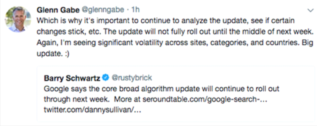 More threads on Twitter expanded upon Google’s explanation around the latest August 1, 2018 release: